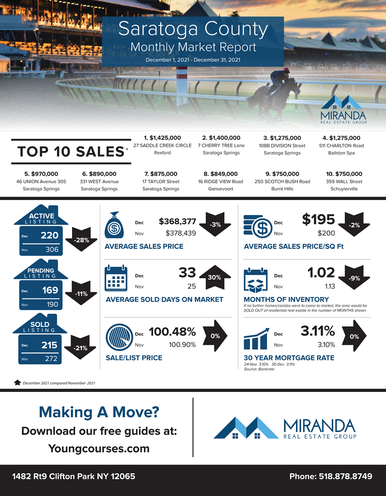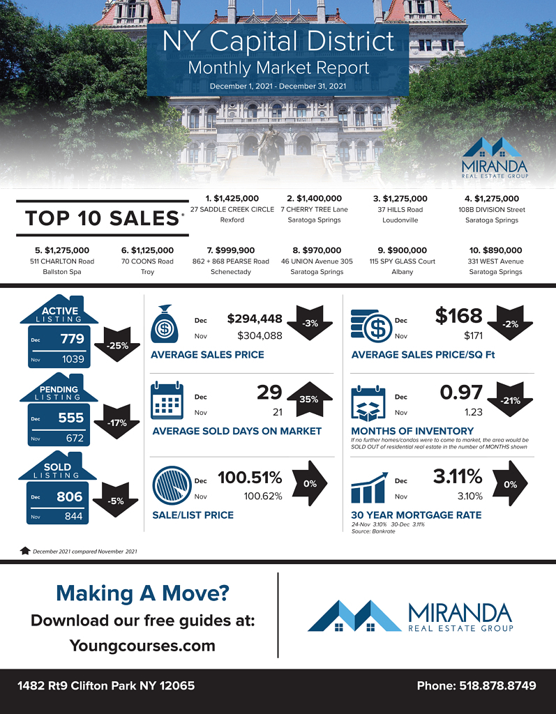According to Global MLS, the marketplace for NY Capital District residential properties, here’s what happened in November 2021 versus December 2021: